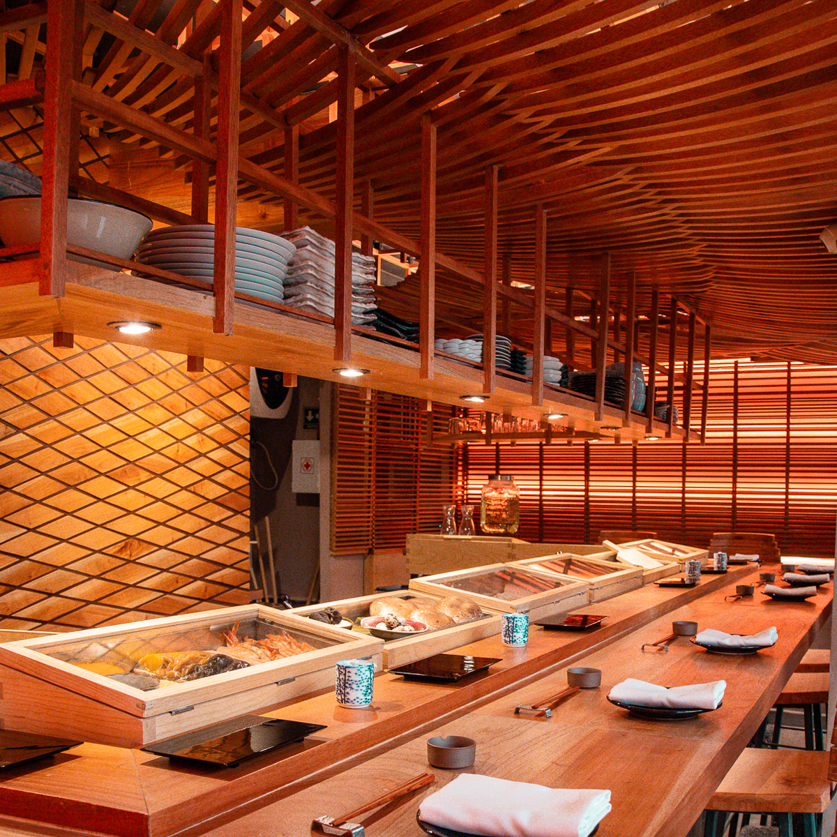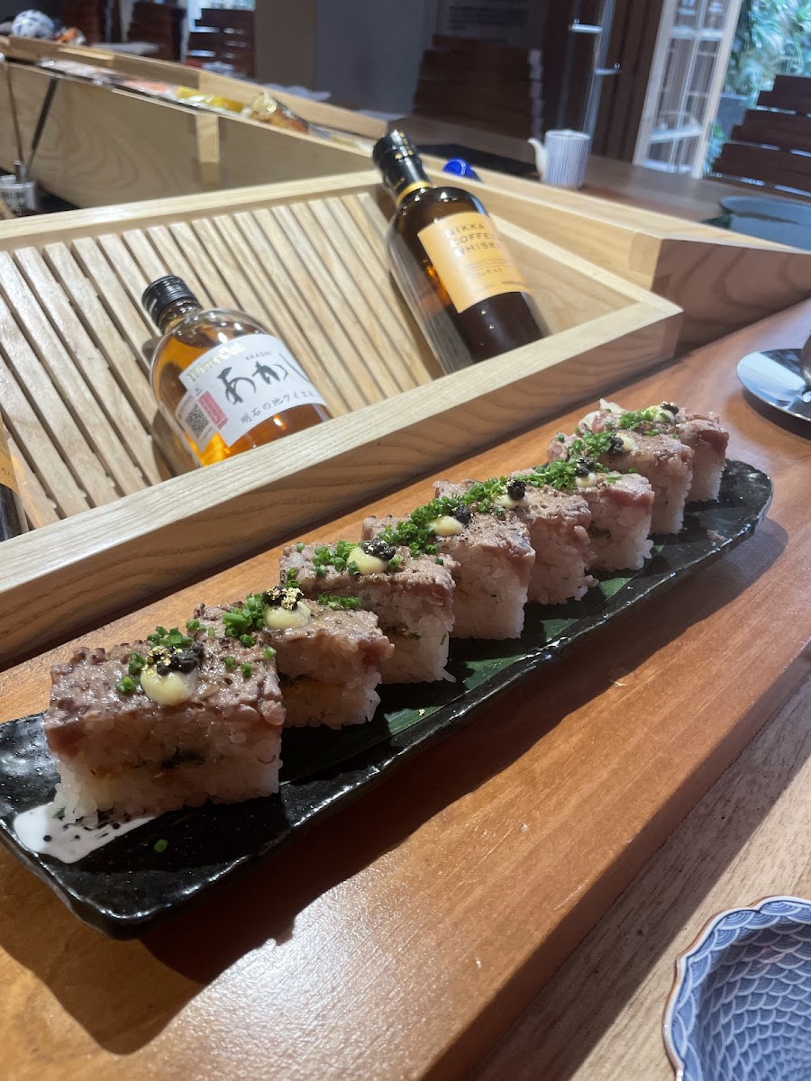 Upon entering, you're welcomed by a quaint courtyard adorned with beautiful granaries, setting the perfect backdrop for a memorable meal. The thoughtful design of the restaurant mirrors that of traditional sushi establishments found in Japan, creating an atmosphere that transcends geographical boundaries.